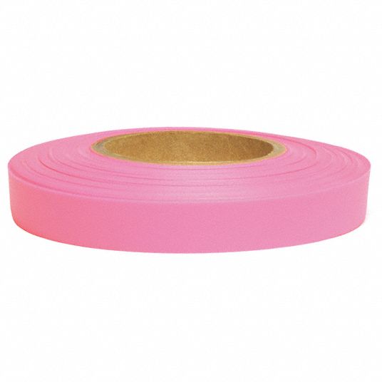 PRESCO PRODUCTS CO, Fluorescent Pink, 1 1/2 in Roll Wd, Flagging Tape Pink Fluorescent Flagging Tape pink flagging tape is often used in surveying land and identifying property boundaries. survey and mark boundaries, trees and hazardous areas with this high visibility tape. The bright pink color provides visibility when tied. You will receive 4 rolls of fluorescent marking tape in. high quality, economically priced pvc material in bold colour. High visibility tape for. Pink Fluorescent Flagging Tape.